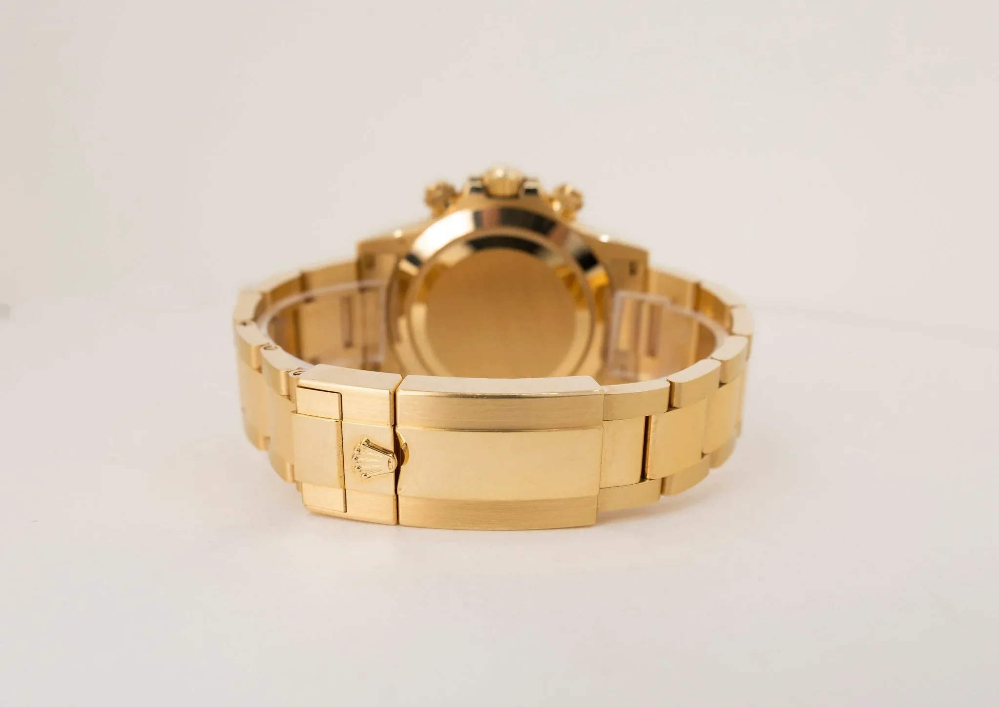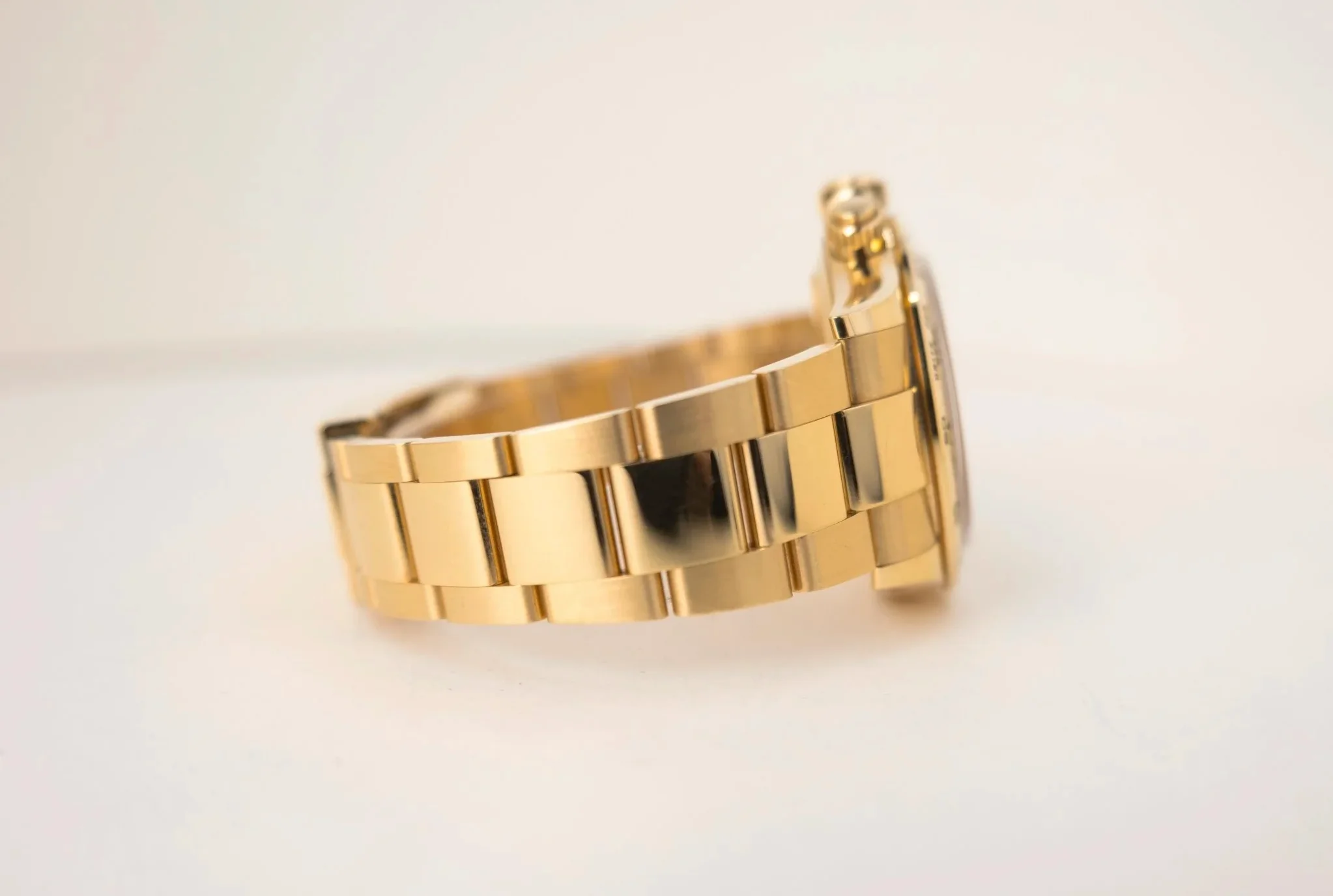 Das Oyster-Armband aus massivem Gelbgold mit Oysterlock-Faltschließe sitzt sicher am Handgelenk.