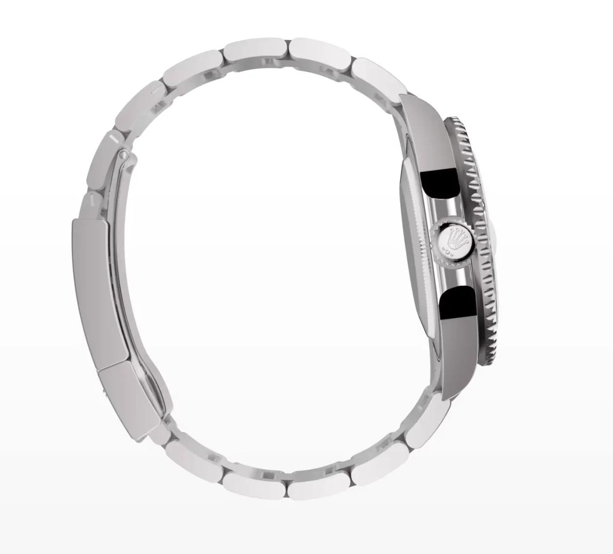 Das Oyster-Armband aus 18K Weißgold mit Oysterclasp und Easylink-Verlängerung bietet luxuriösen Tragekomfort. Die Wasserdichtigkeit beträgt 100 Meter.