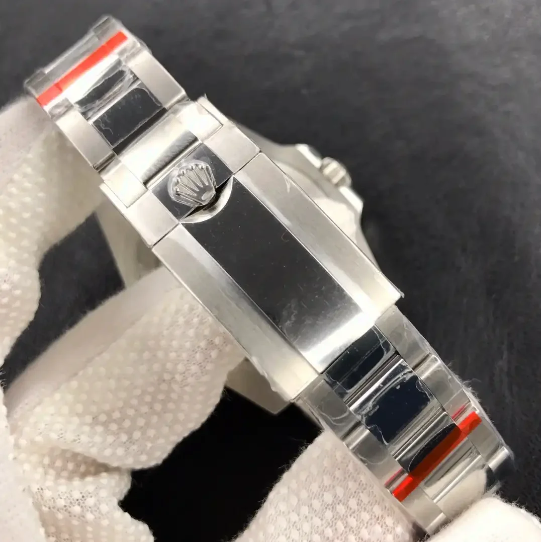 Das Oyster-Armband ist die klassische Wahl für die GMT-Master II und unterstreicht den sportlichen Charakter der Pilotenuhr. Die robuste Konstruktion macht es zum idealen Begleiter für aktive Reisende.