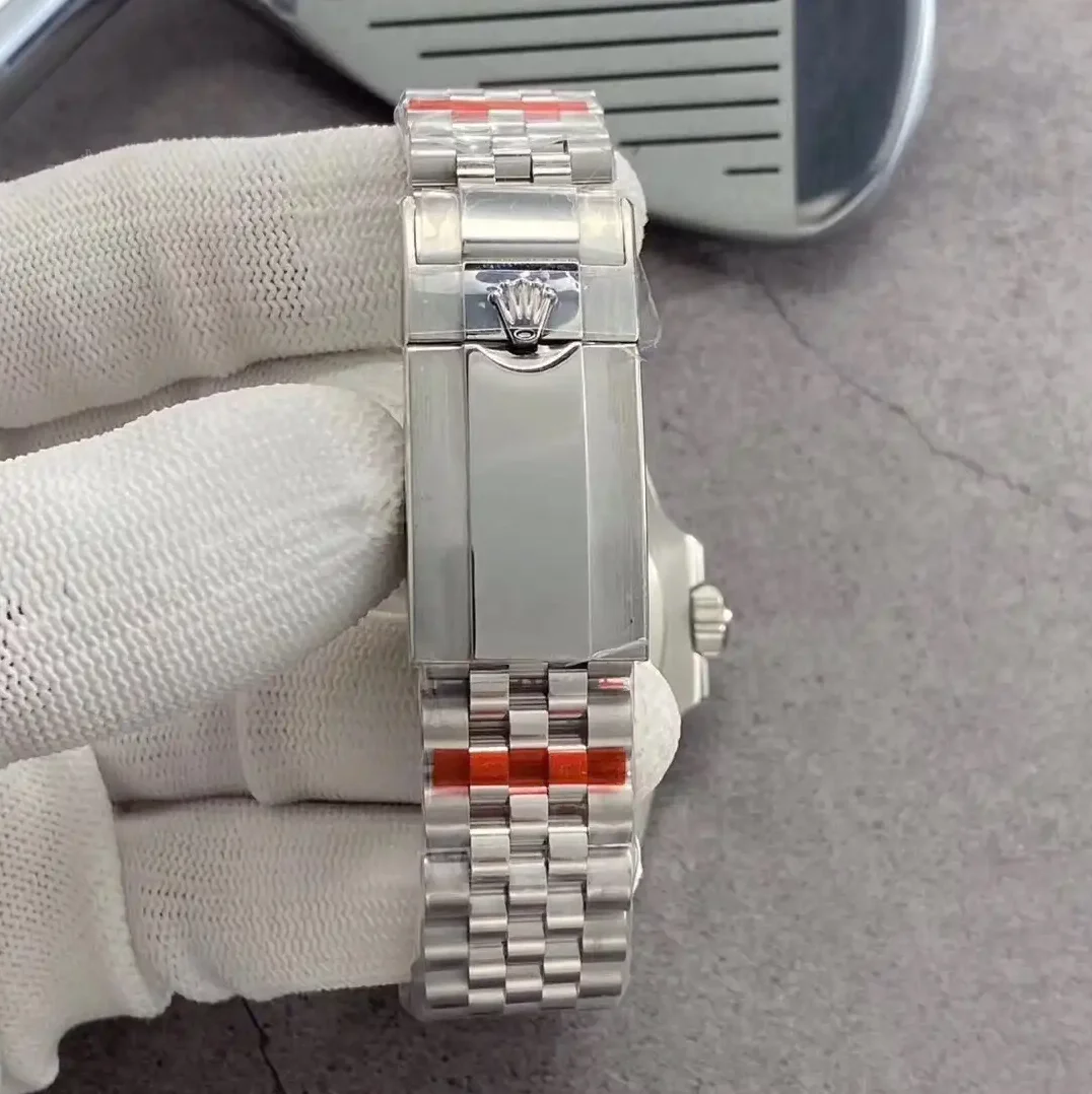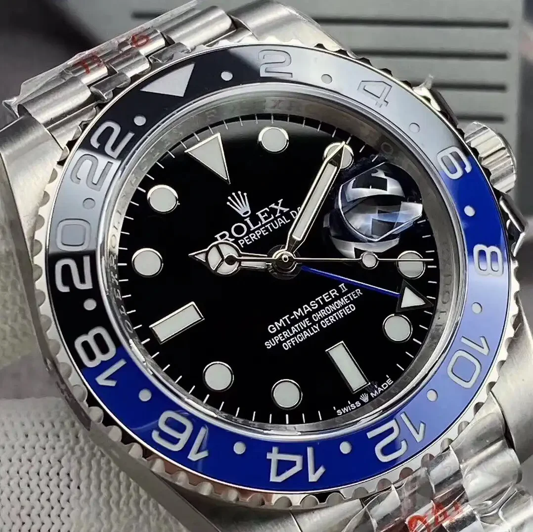 Die Rolex GMT-Master II 126710BLRO mit Jubilee-Armband und schwarzem Zifferblatt zeigt die elegante Seite der Pilotenuhr. Das fünfgliedrige Armband verleiht der sportlichen GMT eine formellere Note.