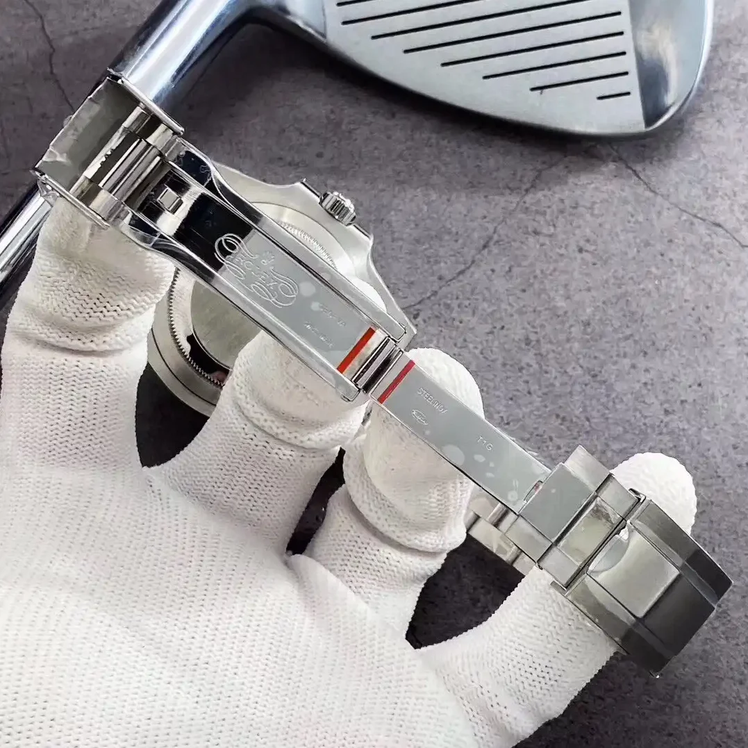 Das Oyster-Armband mit den breiten, flachen Gliedern schließt mit einer Oysterlock-Faltschließe. Die Easylink-Verlängerung erlaubt eine Anpassung um 5mm. Die Wasserdichtigkeit beträgt 100 Meter.