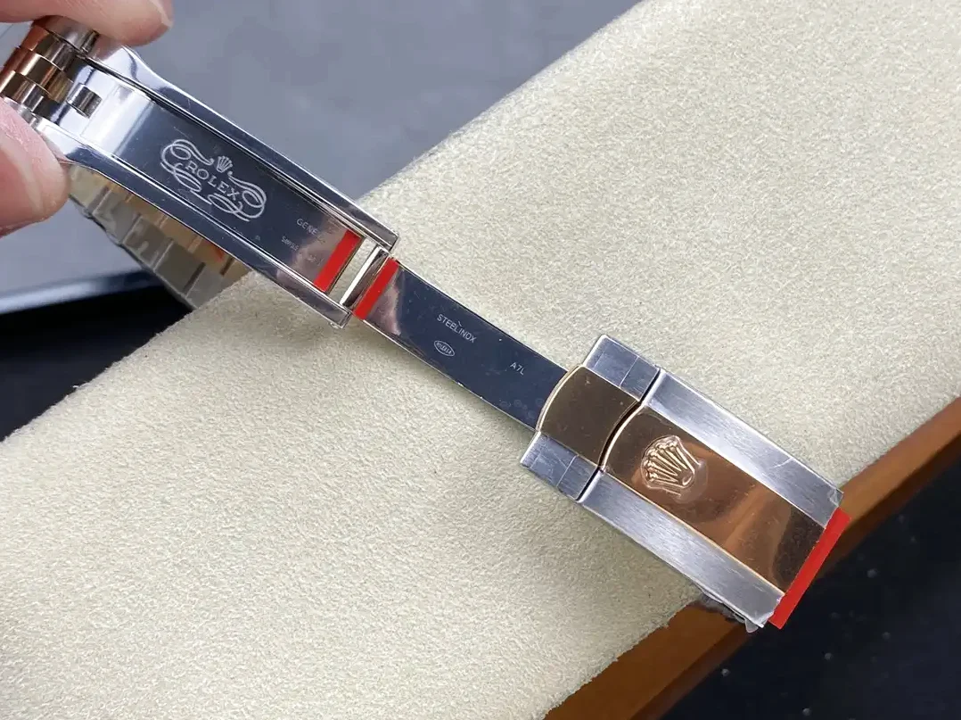 Mit 41mm Durchmesser richtet sich diese Datejust an Herren. Das Jubilee-Armband mit Stahl- und Roségold-Gliedern sitzt geschmeidig und elegant.