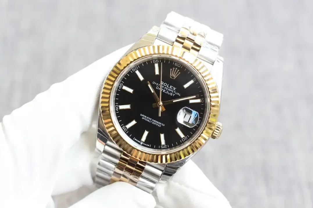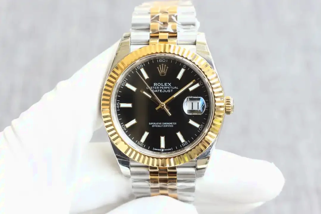 Diese Datejust 126331 in Schwarz eignet sich für Herren, die markante Kontraste mit moderner Bicolor-Optik verbinden möchten.