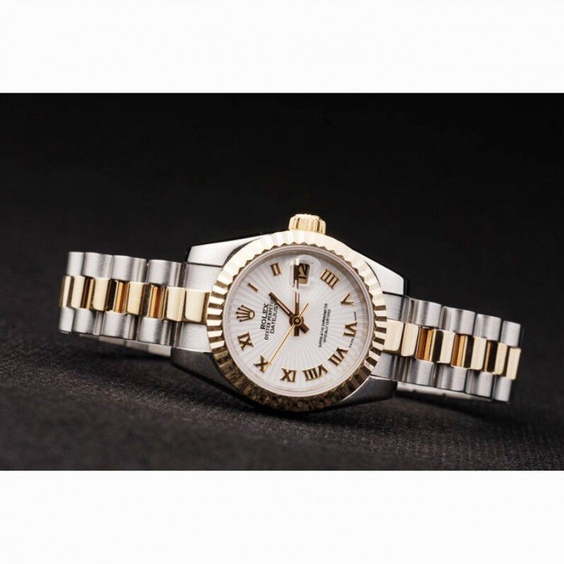Die Rolex Datejust SRL104 in 26mm ist eine klassische Damenreferenz mit weißem Zifferblatt. Diese kompakte Größe sitzt dezent am Handgelenk und strahlt feminine Eleganz aus.