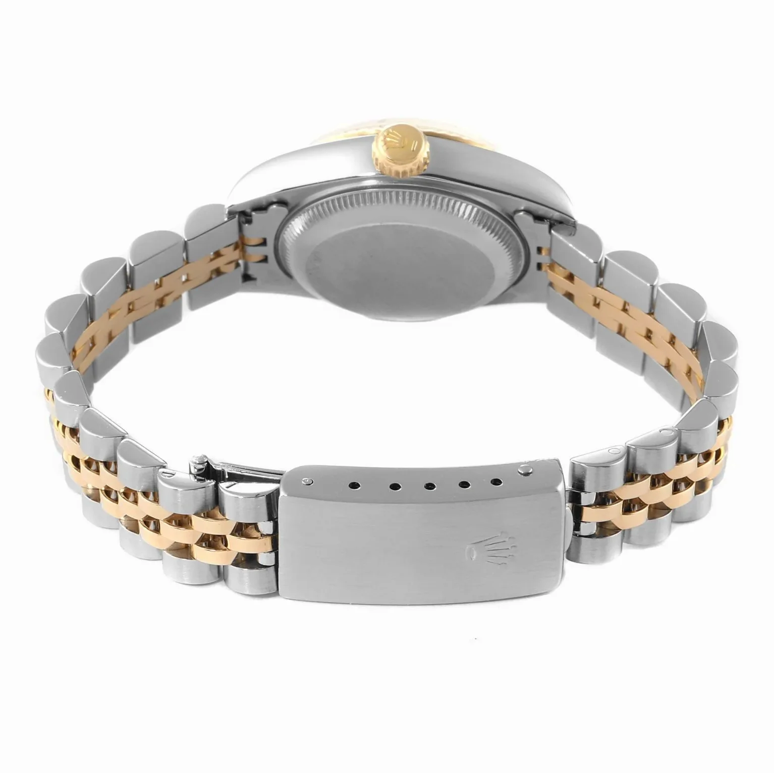 Mit 26mm Durchmesser ist diese Datejust für zierliche Handgelenke konzipiert. Das Jubilee-Armband mit Stahl- und Goldgliedern sitzt geschmeidig und elegant.