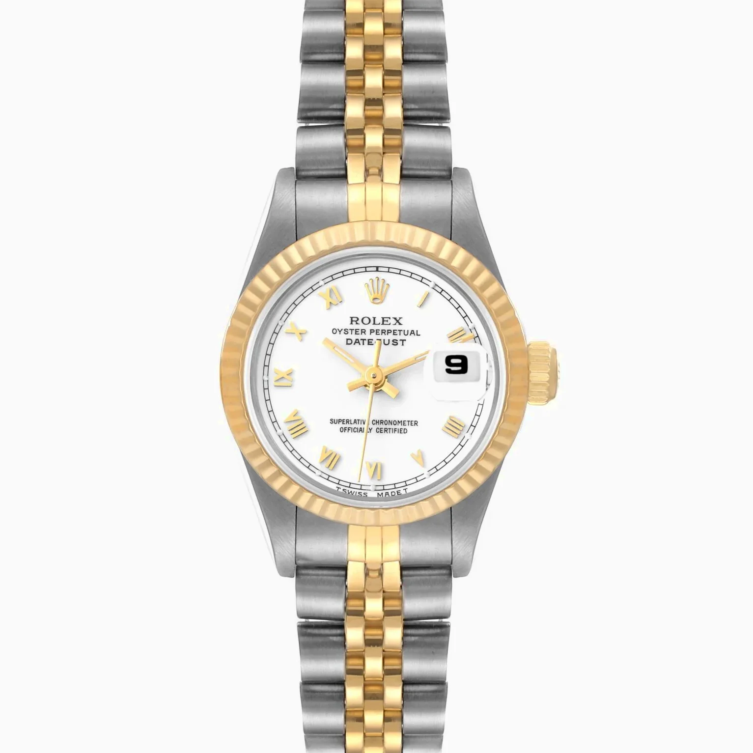 Diese Datejust 69173 in Weiß ist die klassische Wahl für Damen, die Vintage-Bicolor-Eleganz in kompakter Größe schätzen.