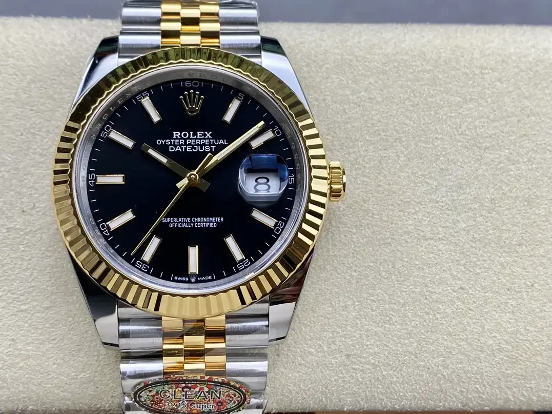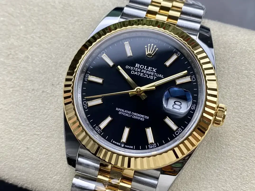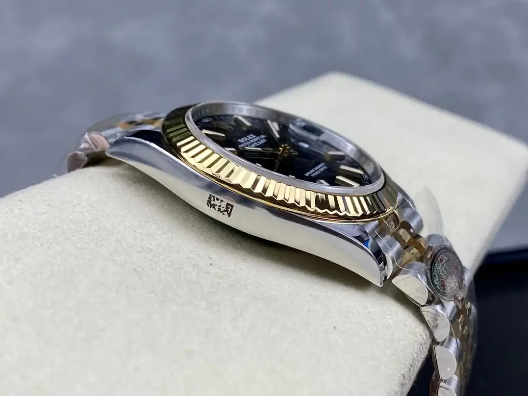 Diese Datejust 126333 in Schwarz-Gold eignet sich für Herren, die klassische Bicolor-Eleganz mit kontrastreichem Zifferblatt suchen.
