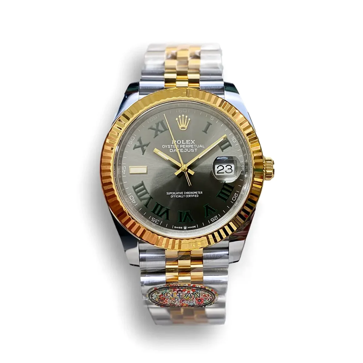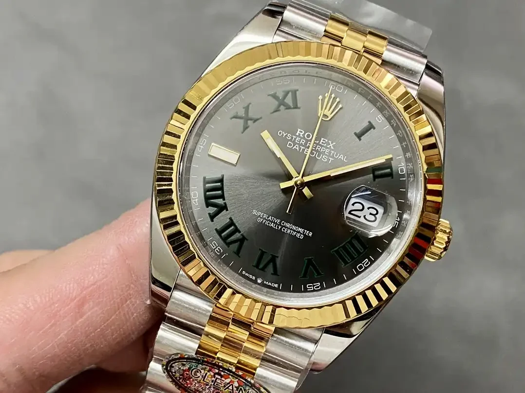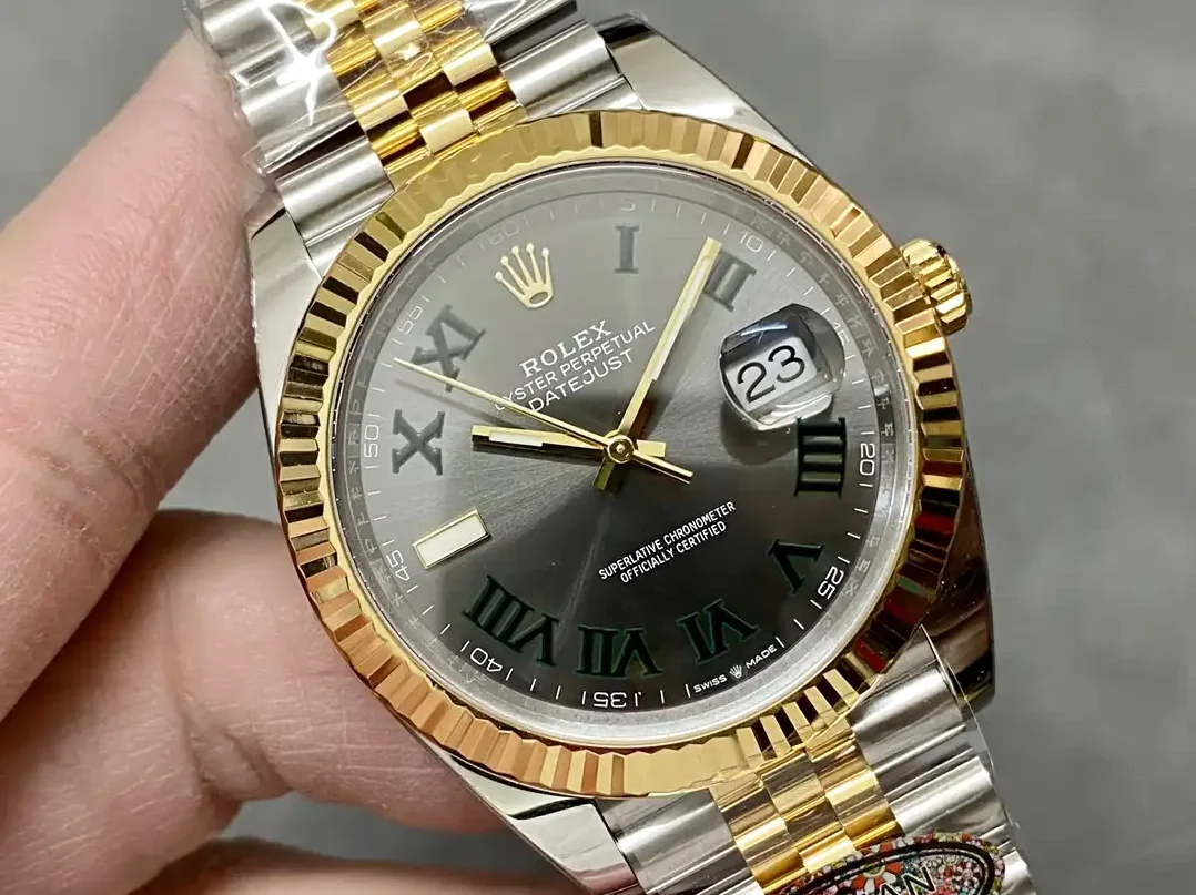 Die Rolex Datejust 126333 mit schieferfarbenem Diamant-Zifferblatt und Jubilee-Armband vereint dezenten Luxus mit klassischer Bicolor-Eleganz. Oystersteel und 18 Karat Gelbgold in 41mm.
