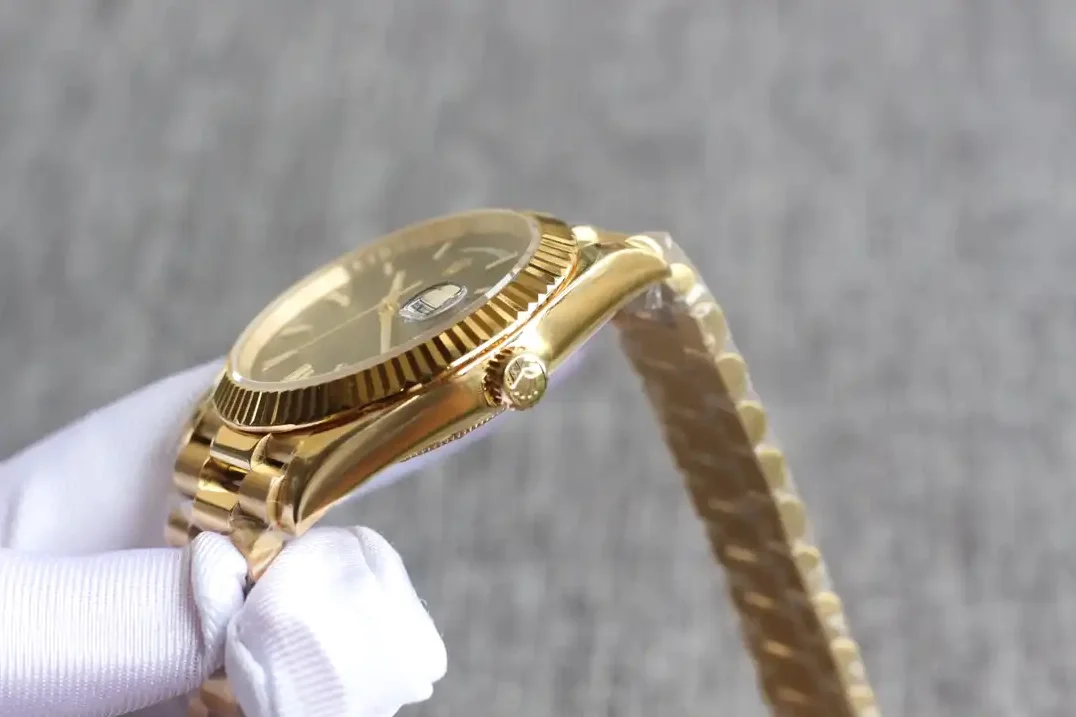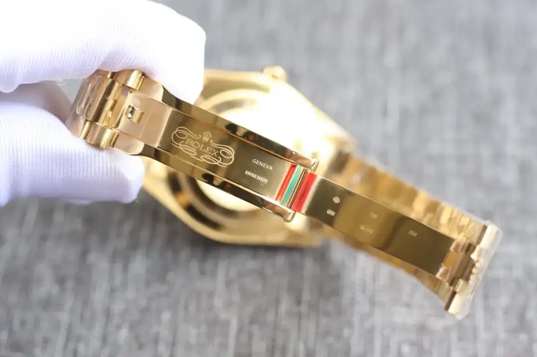 Das Präsident-Armband aus massivem Everose-Gold mit halbkreisförmigen Gliedern wurde exklusiv für die Day-Date entwickelt. Die versteckte Kronenschließe garantiert sicheren Halt.