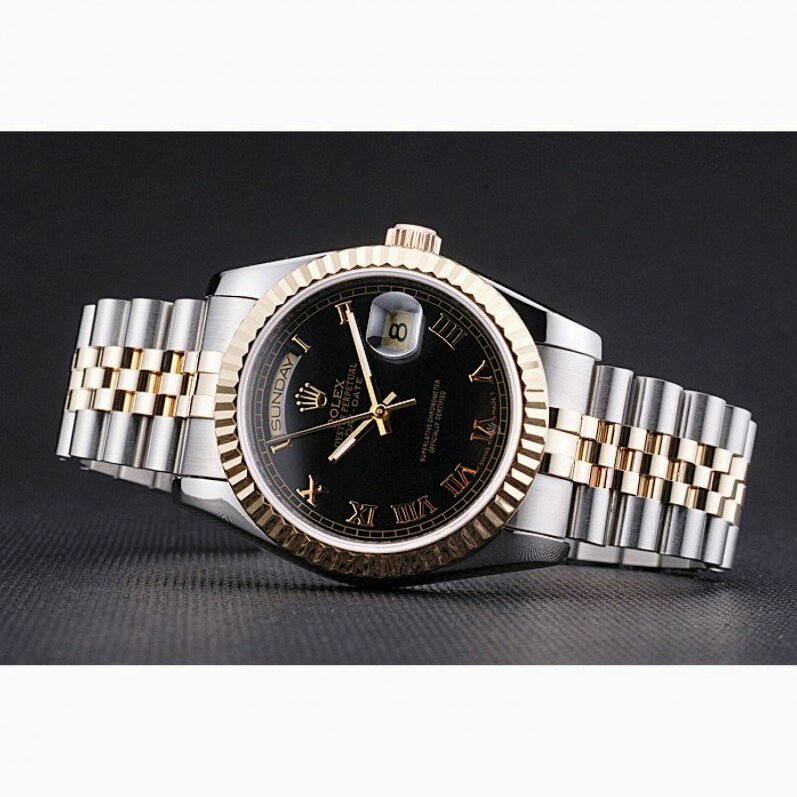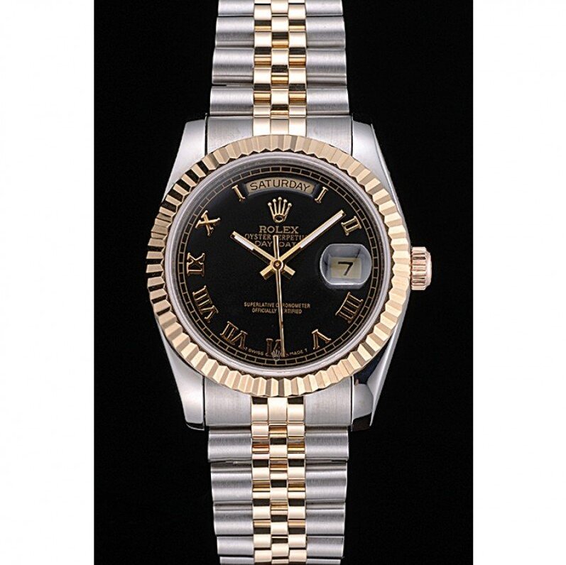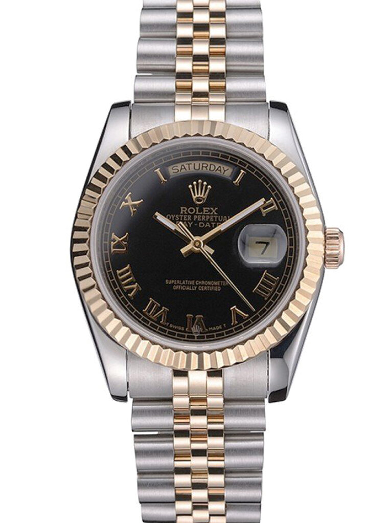Diese Day-Date mit schwarzem Zifferblatt vereint sportlichen Ausdruck mit klassischem Gelbgold. Kostenloser Versand und 2 Jahre Garantie.