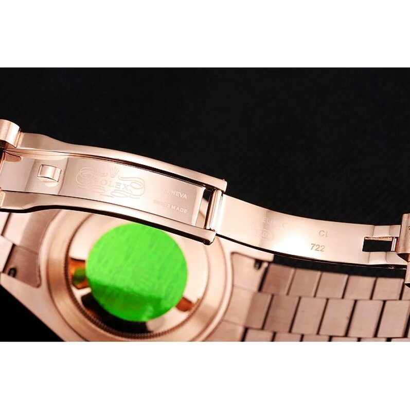 Das Präsident-Armband aus massivem Everose-Gold mit halbkreisförmigen Gliedern wurde exklusiv für die Day-Date entwickelt. Die versteckte Kronenschließe garantiert sicheren Halt.