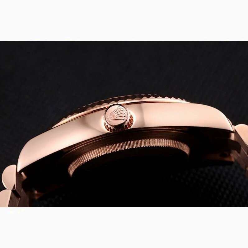 Diese Rolex Day-Date mit der internen Referenz REP016823 präsentiert die Präsidentenuhr im 40mm-Format aus Everose-Gold. Das roségoldfarbene Zifferblatt harmoniert perfekt mit dem warmen Ton des Gehäuses.