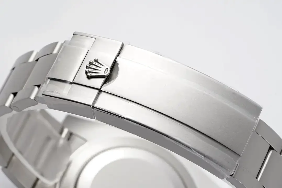 Mit 41mm Durchmesser prasentiert sich diese Submariner selbstbewusst und sportlich. Die Keramikluenette ist kratzfest und behaelt ihre intensive Farbe dauerhaft. Die massiven Bandanstoesse und die verschraubte Krone unterstreichen den professionellen Charakter dieser Taucheruhr.