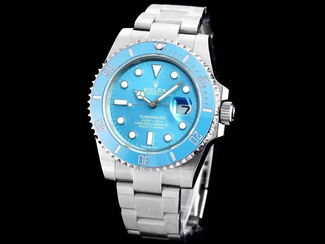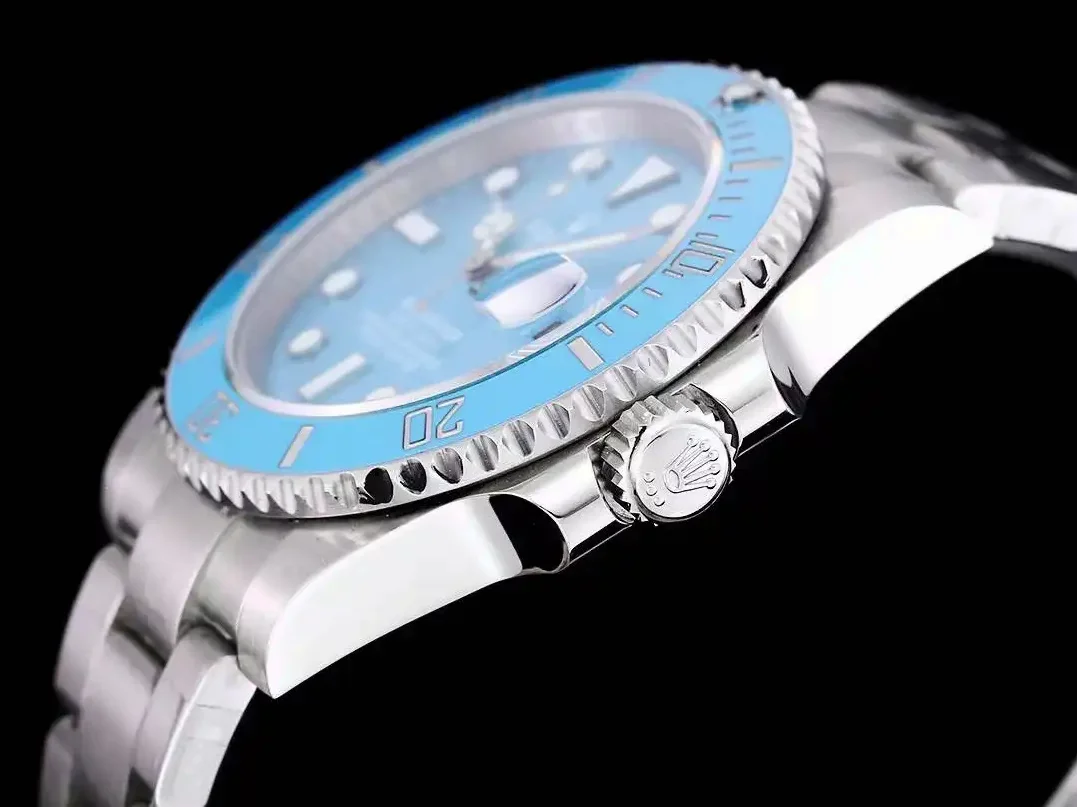 Mit 41mm Durchmesser prasentiert sich diese Submariner selbstbewusst und sportlich. Die Keramikluenette ist kratzfest und behaelt ihre intensive Farbe dauerhaft. Die massiven Bandanstoesse und die verschraubte Krone unterstreichen den professionellen Charakter dieser Taucheruhr.
