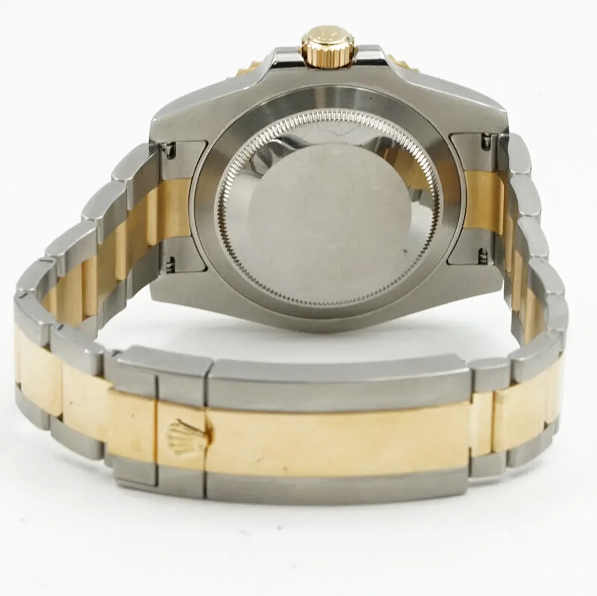 Mit 40mm Durchmesser prasentiert sich diese Submariner selbstbewusst und sportlich. Die Keramikluenette ist kratzfest und behaelt ihre intensive Farbe dauerhaft. Die massiven Bandanstoesse und die verschraubte Krone unterstreichen den professionellen Charakter dieser Taucheruhr.