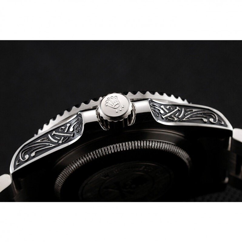 Mit 41mm Durchmesser prasentiert sich diese Submariner selbstbewusst und sportlich. Die Keramikluenette ist kratzfest und behaelt ihre intensive Farbe dauerhaft. Die massiven Bandanstoesse und die verschraubte Krone unterstreichen den professionellen Charakter dieser Taucheruhr.