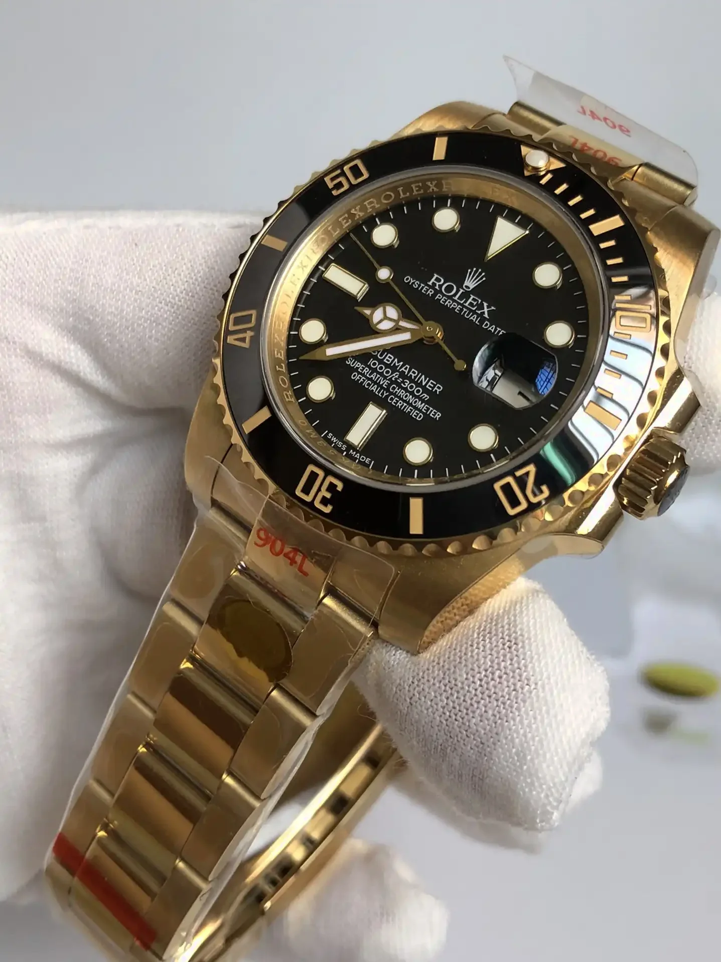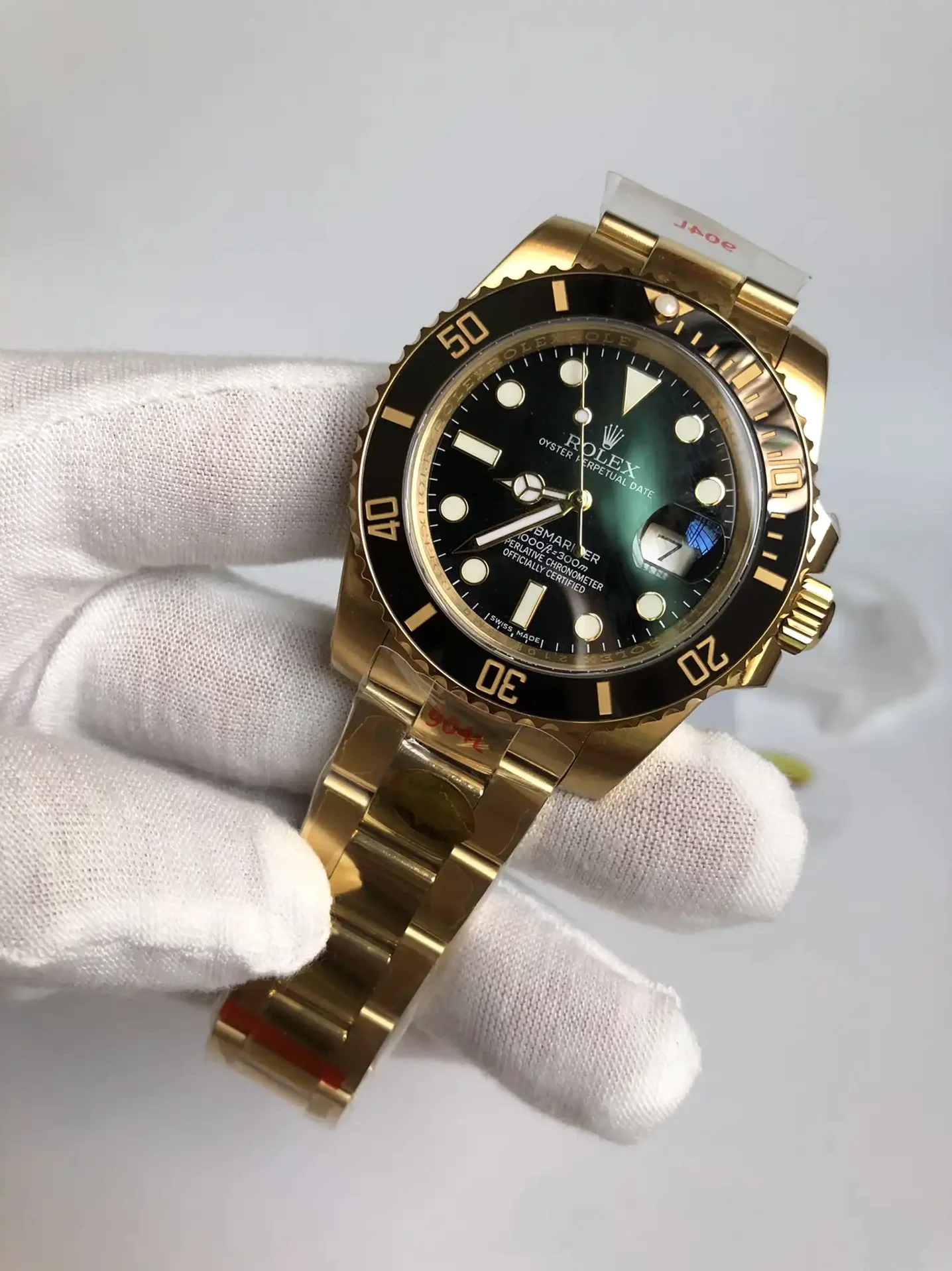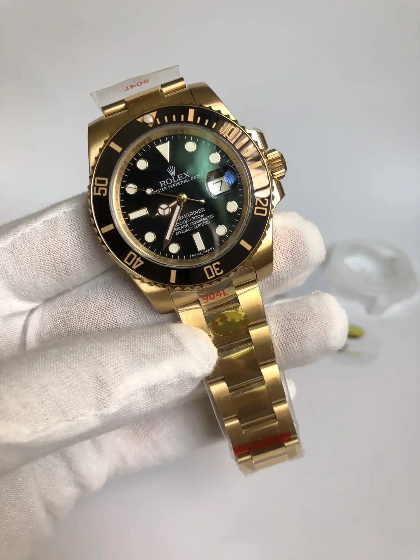 Die Rolex Submariner SUB 116610 40mm Gold Series Taucheruhr ist eine Legende der Uhrengeschichte. Als professionelle Taucheruhr konzipiert, hat sie laengst den Weg aus der Tiefe an die Handgelenke von Stilikonen weltweit gefunden. Das Gold Zifferblatt dieser Ausgabe verkoerpert den unverwechselbaren Submariner-Look.