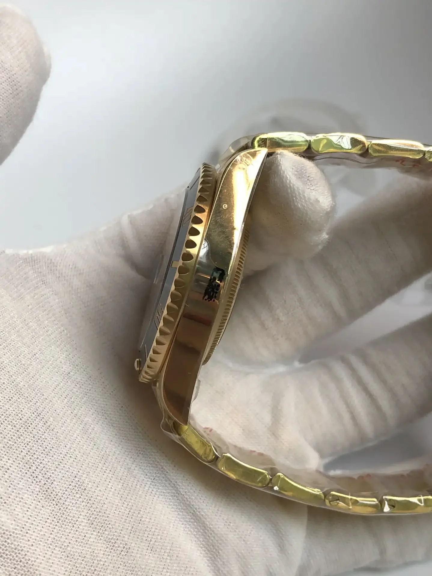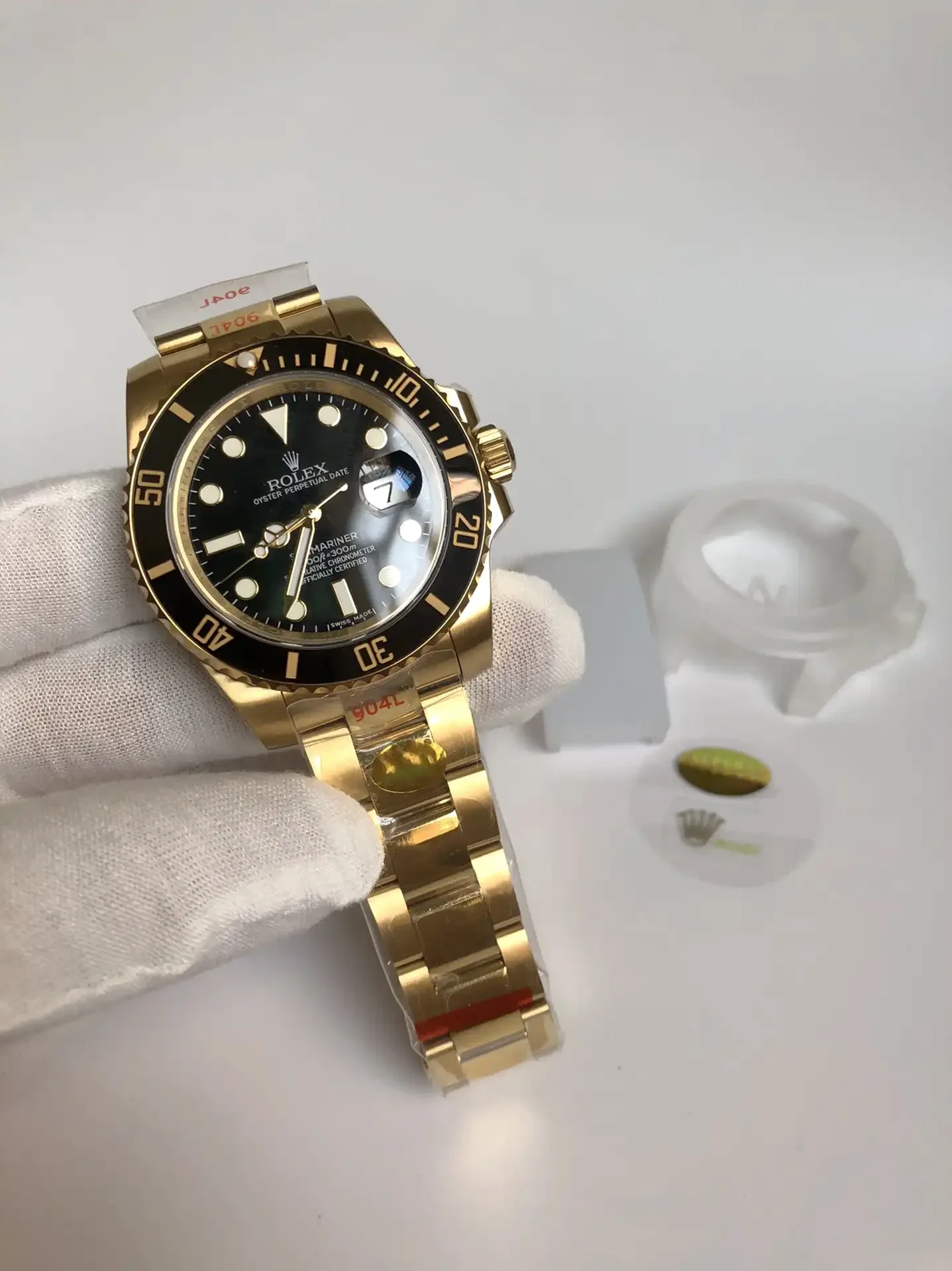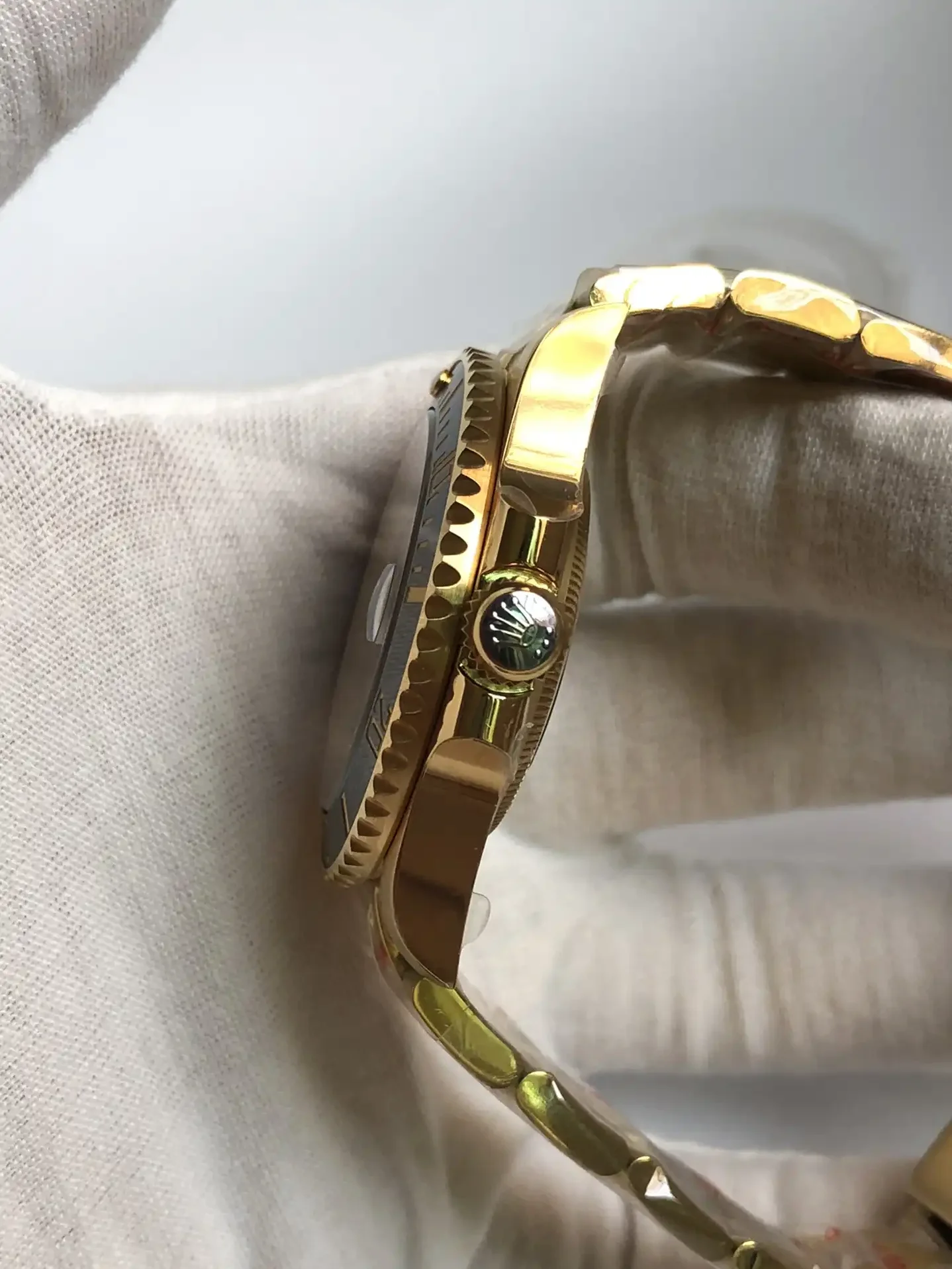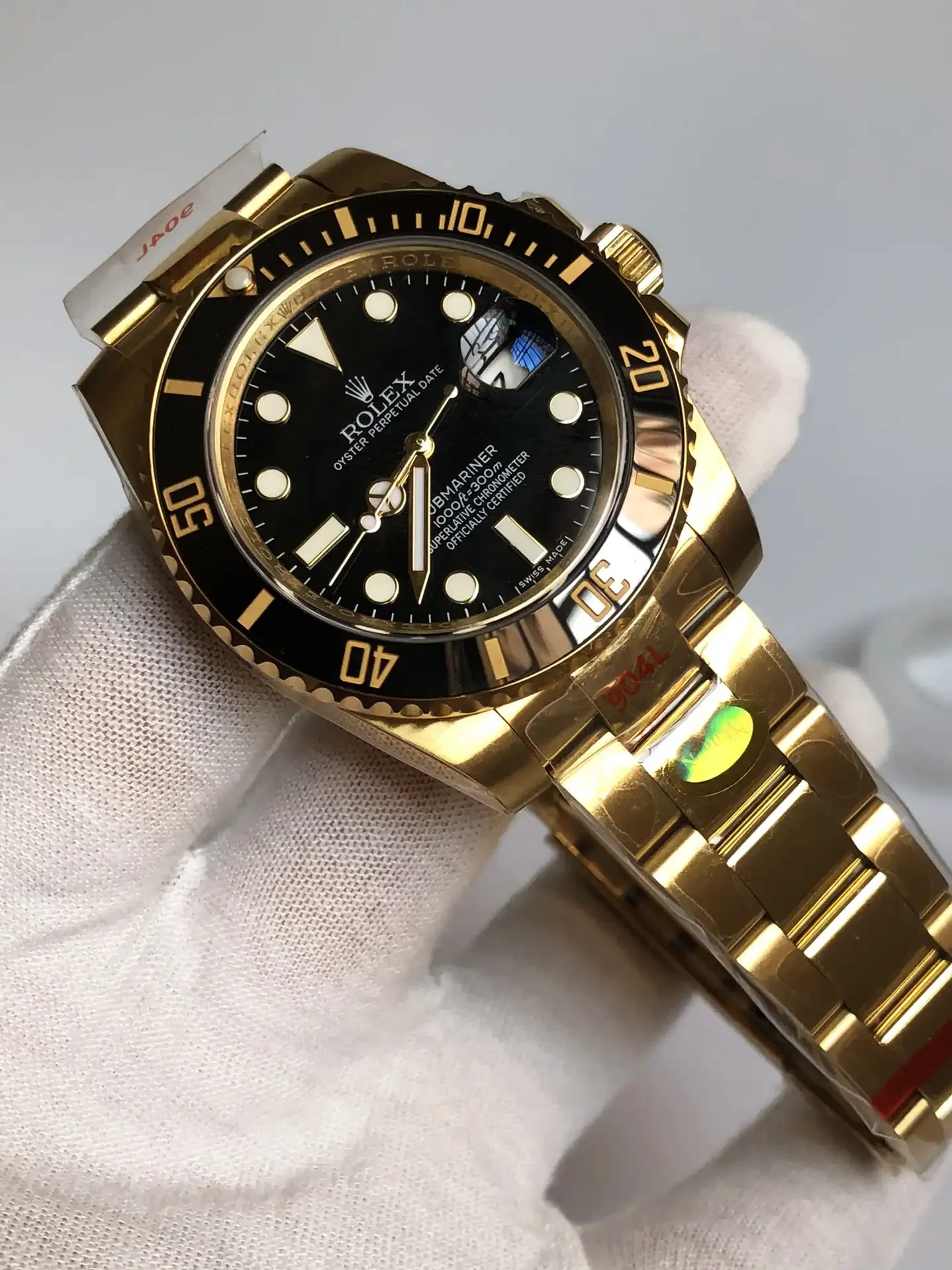 Die Rolex Submariner SUB 116610 40mm Gold Series Taucheruhr ist eine Legende der Uhrengeschichte. Als professionelle Taucheruhr konzipiert, hat sie laengst den Weg aus der Tiefe an die Handgelenke von Stilikonen weltweit gefunden. Das Gold Zifferblatt dieser Ausgabe verkoerpert den unverwechselbaren Submariner-Look.