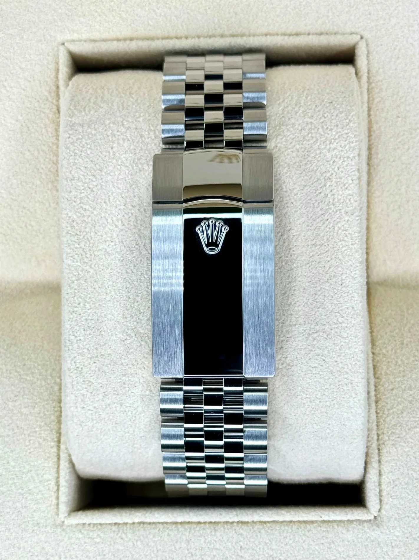 Das Jubilee-Armband mit verdeckter Oysterclasp und Easylink bietet eleganten Tragekomfort. Die Wasserdichtigkeit beträgt 100 Meter.