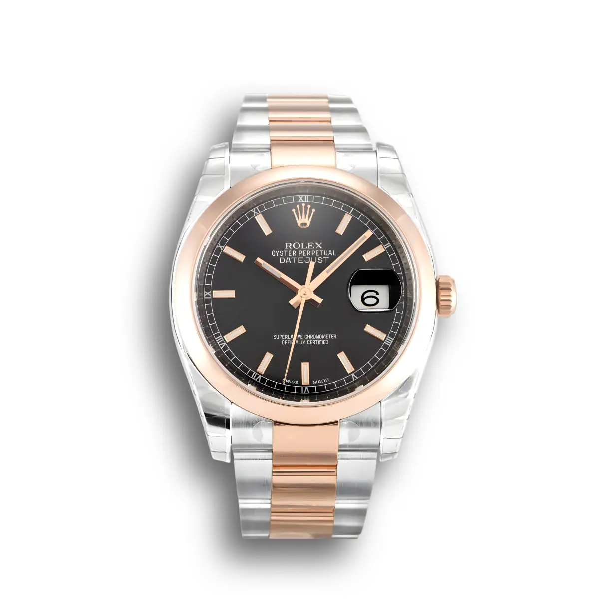 The Rolex Datejust 116201 Weiß Gold Bezel 36mm Schwarz Zifferblatt verfügt über ein Schwarz Zifferblatt an einem Oyster Armband, angetrieben von einem präzisen Automatikwerk. Gefertigt aus Edelstahl & Roségold vergoldet mit Saphirglas und 30 m (Schweizer) Wasserdichtigkeit, liefert diese Datejust-Referenz authentische Rolex-Ästhetik. Erhältlich in 36 mm bietet dieses elegante Damen-Zeitmesser erstklassige Super-Clone-Verarbeitung zu einem attraktiven Preis.