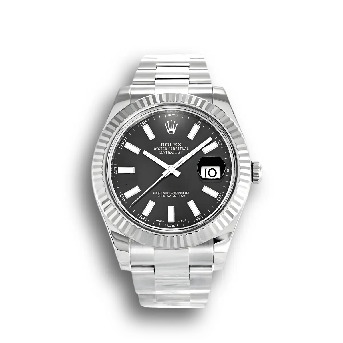 Rolex Datejust 116334 - 41mm Schwarz Zifferblatt Edelstahl-Uhr — Schweizer Uhrwerk