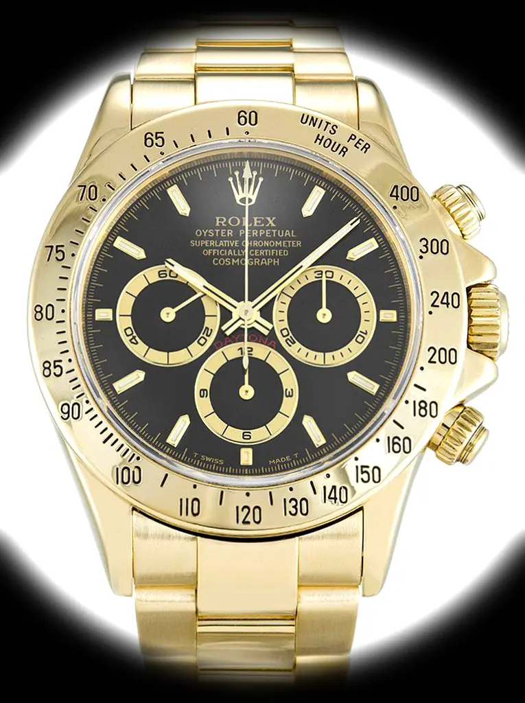 Die Rolex Cosmograph Daytona 116528 Black Dial 40mm zeigt ein schwarzes Zifferblatt an einem Oyster-Armband, angetrieben von einem präzisen automatischen Chronographenwerk. Built for motorsport precision with Sapphire crystal and 30m (Swiss) water resistance, this legendary Daytona chronograph delivers authentic Rolex racing aesthetics. Available in 40 mm, this precision timepiece offers premium quality super clone craftsmanship at an accessible price point.