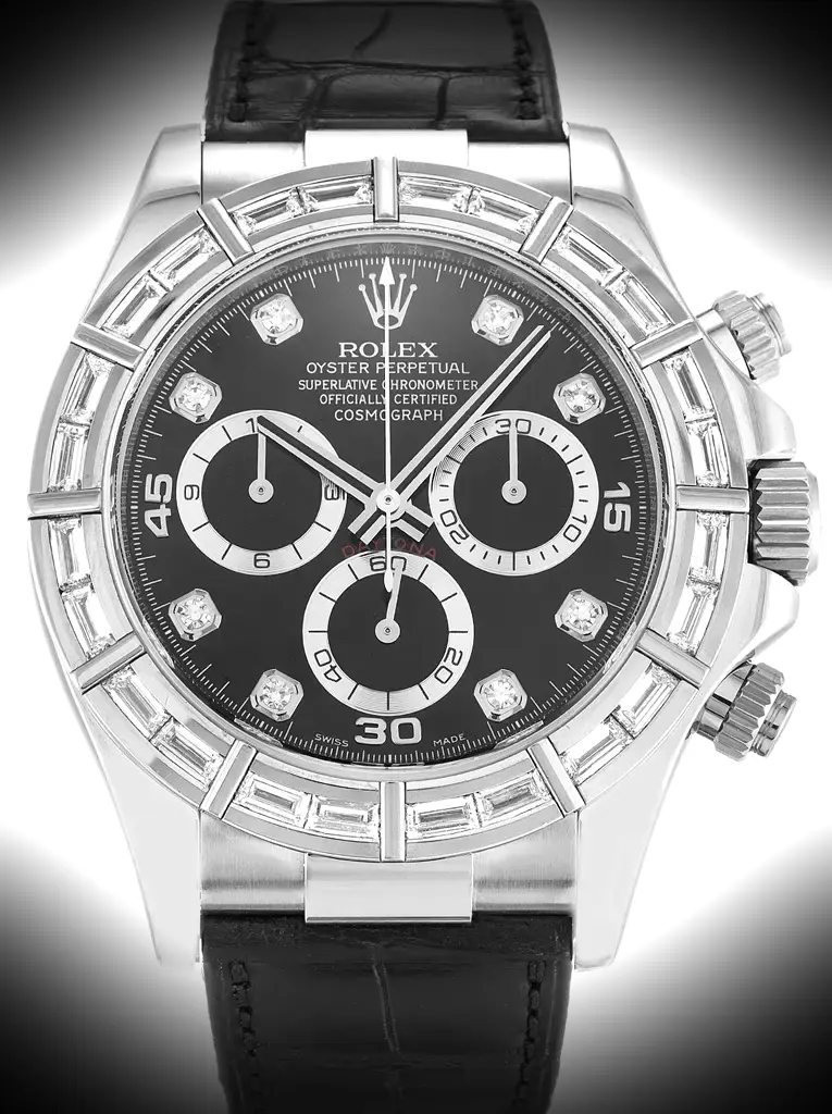 Die Rolex Daytona 40mm Black Dial 116589br bringt das ikonische Daytona-Design ans Handgelenk. Mit einem schwarz Zifferblatt in einem 40mm 904l steel Gehäuse fängt dieser Super Clone jedes Detail der echten Referenz ein.