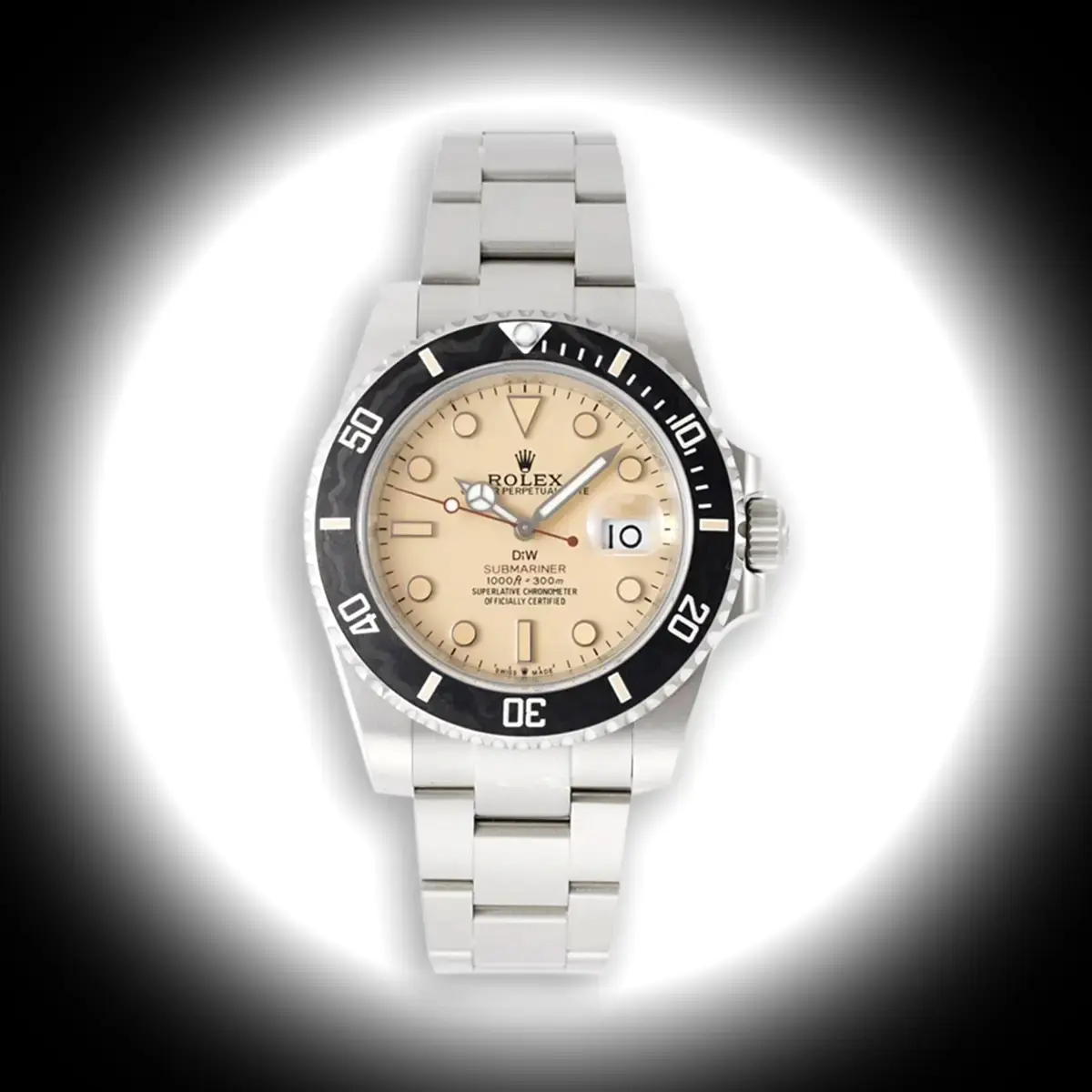 The DIW Parakeet in light brown puts an earthy spin on the Submariner. It's not a color you see often on dive watches, which is the point.That brown Zifferblatt gives the watch a warmer character than the usual schwarz or blau options. Still has leuchtend indices for visibility.The Keramik-Lünette handles dive timing duties. Counterclockwise rotation, solid clicks, standard functionality.300 Meter wasserdicht. The DIW modifications don't compromise the watch's core capabilities.For collectors after something that doesn't look like everyone else's Sub.Marke: Rolex DIWCollection: Submariner ParakeetReference: 116610LB ParakeetDial: Light BrownWasserdichtigkeit: 300 Meter