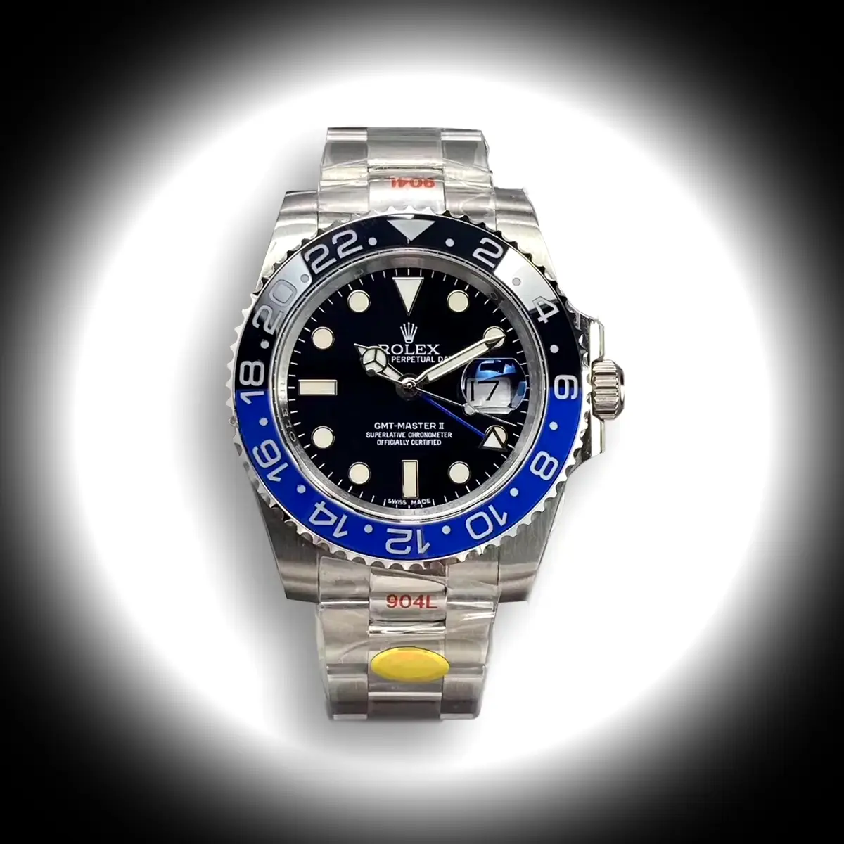 The Rolex GMT-Master II 126710BLRO Pepsi - 40mm Black Dial Blue Red Bezel features a Black Zifferblatt on a Oyster bracelet, angetrieben von einem präzisen Automatik GMT movement. Engineered for world travelers with Saphirglas and dual-timezone tracking, diese GMT-Master-Referenz delivers authentic Rolex GMT aesthetics. Erhältlich in 40 mm bietet dieses Präzisionszeitmesser erstklassige Super-Clone-Qualität zu einem attraktiven Preis.