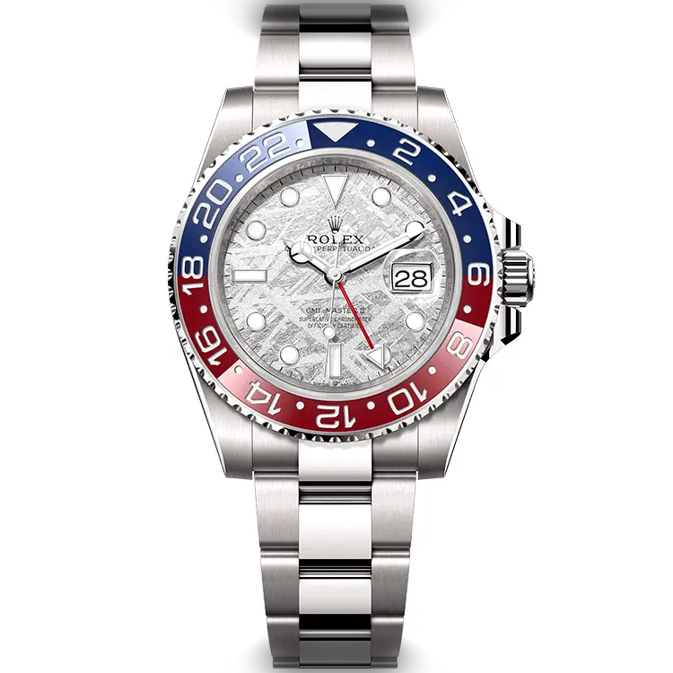 The Rolex GMT-Master II 126719BLRO Superman Meteorite Dial Oyster features a Meteorite Zifferblatt on a Oyster bracelet, angetrieben von einem präzisen Automatik GMT movement. Engineered for world travelers with Saphirglas and dual-timezone tracking, diese GMT-Master-Referenz delivers authentic Rolex GMT aesthetics. Erhältlich in 40 mm bietet dieses Präzisionszeitmesser erstklassige Super-Clone-Qualität zu einem attraktiven Preis.