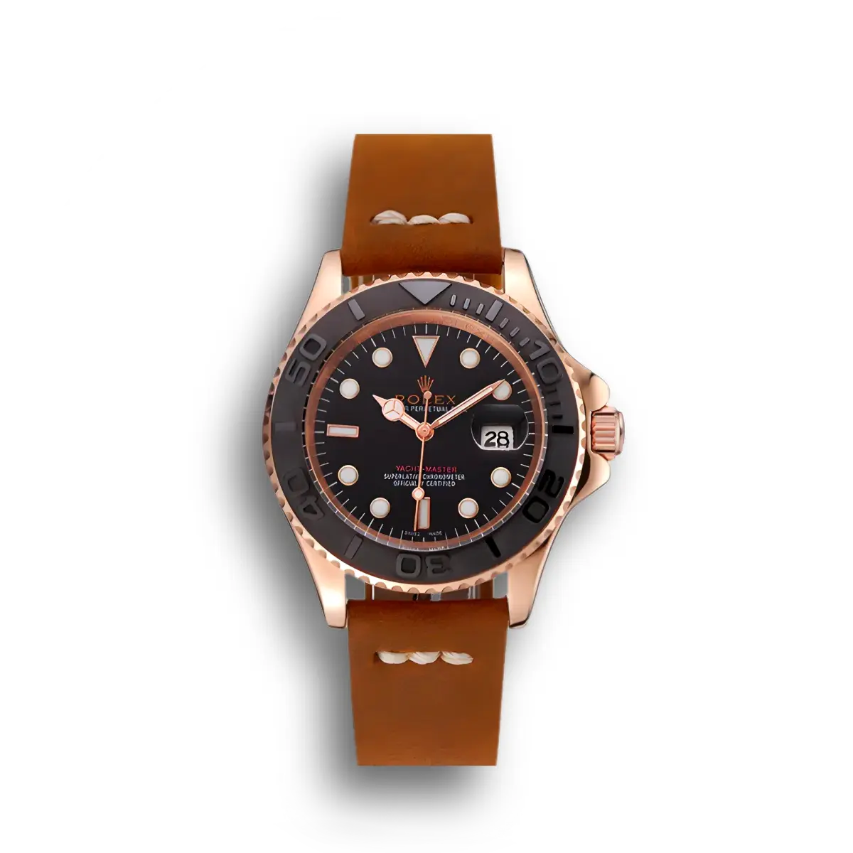 The Rolex Yacht-Master 41mm Black Dial 1453861 verfügt über ein schwarzen Zifferblatt an einem Lederband, angetrieben von einem präzisen Automatikwerk. Gefertigt aus Roségold vergoldet mit Saphirglas und 30m (Swiss), liefert diese Yacht-Master-Referenz authentische Rolex-Ästhetik. Erhältlich in 41 mm bietet dieses Präzisionszeitmesser hochwertige Super-Clone-Handwerkskunst zu einem erschwinglichen Preis.