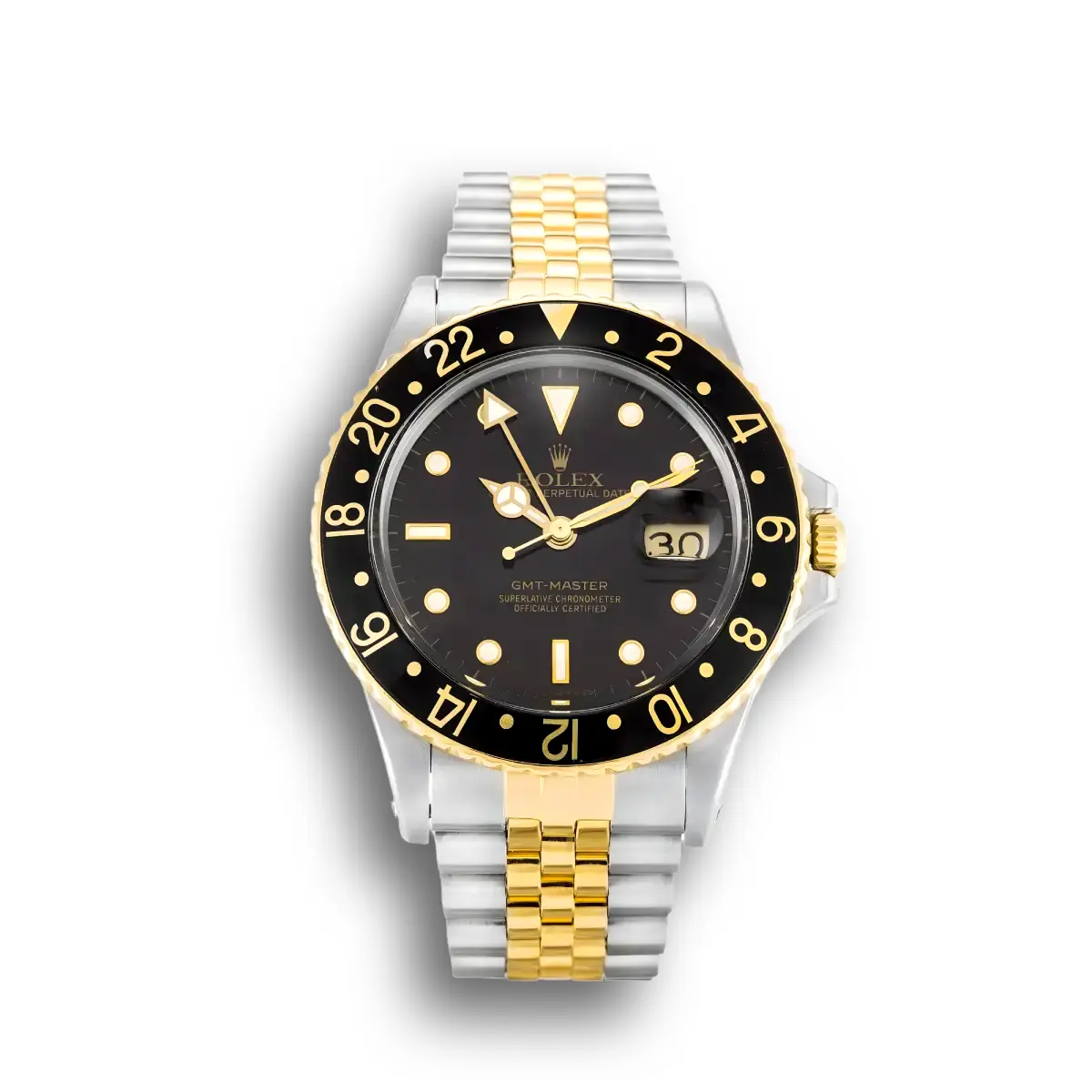 Rolex GMT-Master 16753 - 38mm Schwarz Zifferblatt Bicolor Nipple Zifferblatt — Schweizer Uhrwerk