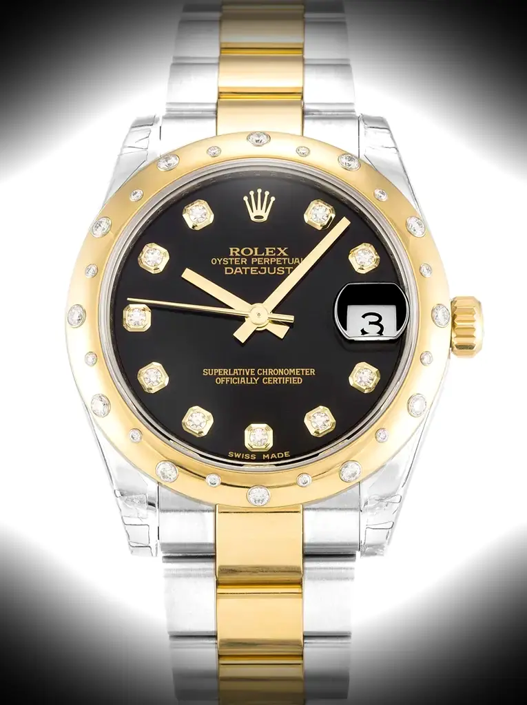 Marke: Rolex Kollektion: Datejust Referenz: 178343 Gehäusegröße: 31mm Gehäusematerial: 904L Stahl Zifferblattfarbe: Schwarz