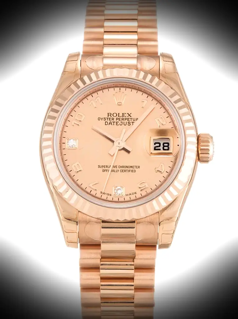 The Rolex Lady Datejust 26mm Mother Of Pearl Goldust Zifferblatt 179175f brings the iconic Lady-Datejust design to your wrist. Mit einem schwarzen Zifferblatt in einem 26mm Gelbgold Gehäuse, dieser Super Clone erfasst jedes Detail der echten Referenz.