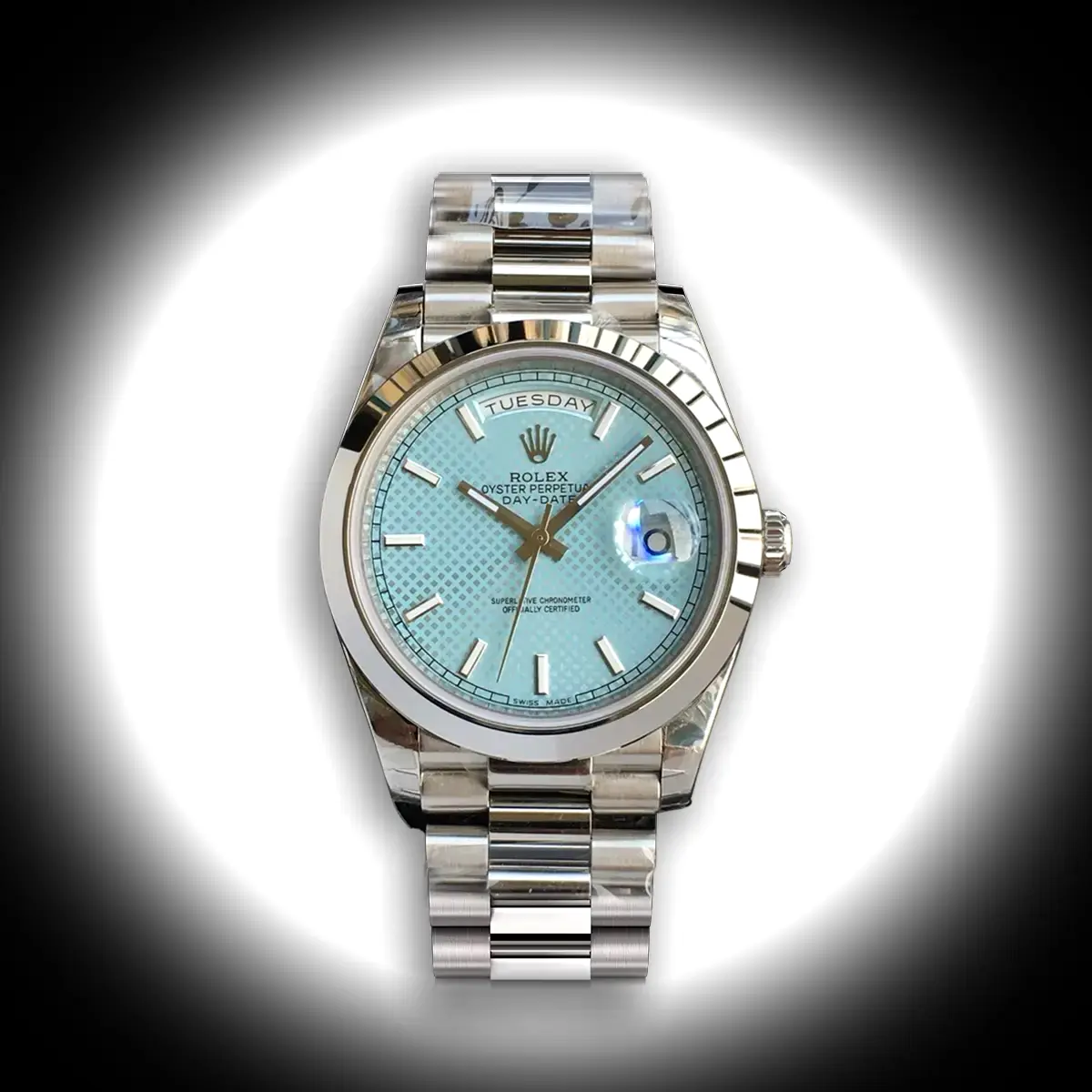 Rolex Day-Date 228238 Eisblau Motiv-Zifferblatt Uhr — Schweizer Uhrwerk