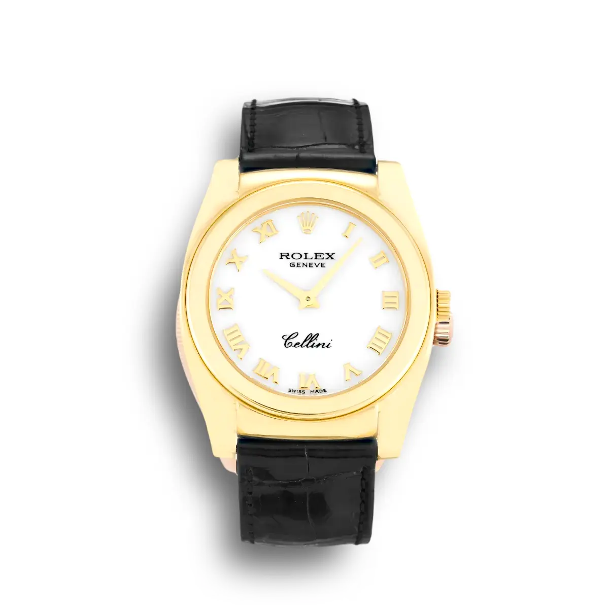 The Rolex Cellini 32mm White Dial – Ref. 5320 verfügt über ein Weiß Zifferblatt an einem Leather Band-Armband, angetrieben von einem präzisen Automatikwerk. Gefertigt aus Gelbgold-Vergoldet mit Saphirglas und 30m (Schweizer), bietet diese Cellini-Referenz authentische Rolex-Ästhetik. Erhältlich in 32 mm bietet dieses elegante Damenuhrenmodell erstklassige Super-Clone-Qualität zu einem attraktiven Preis.