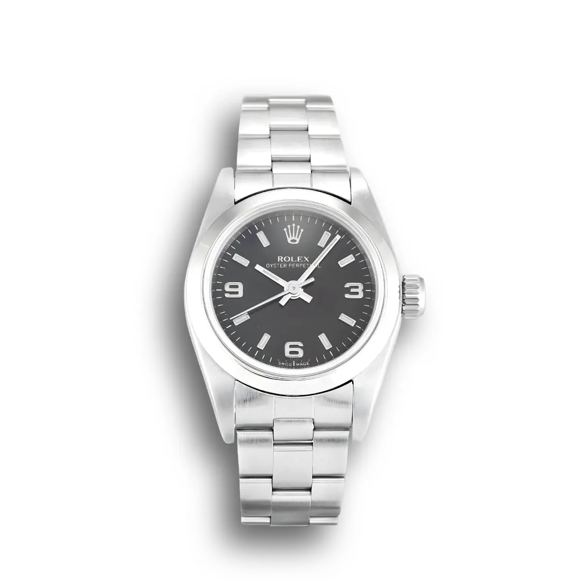 Rolex Oyster Perpetual Lady 26mm Schwarz Zifferblatt 67180 — Schweizer Uhrwerk